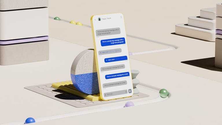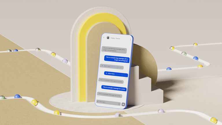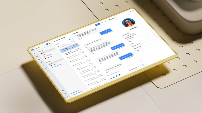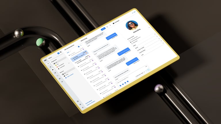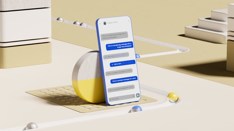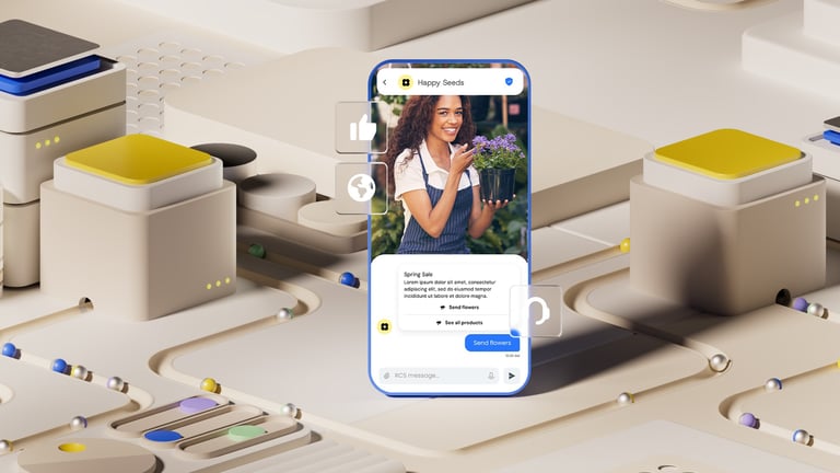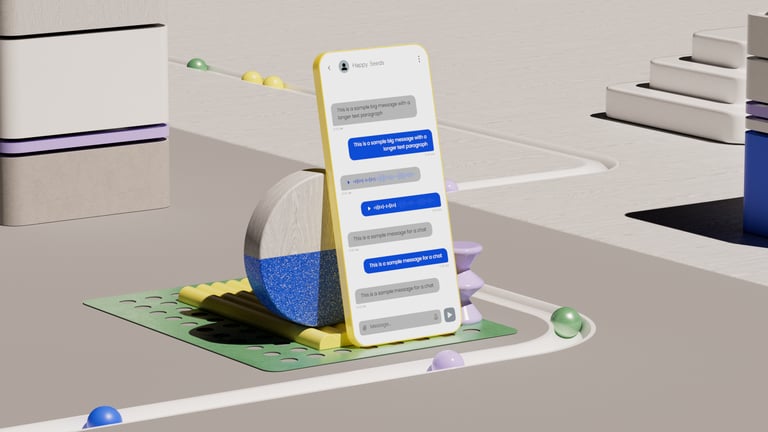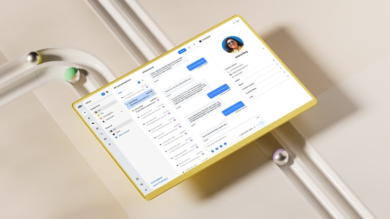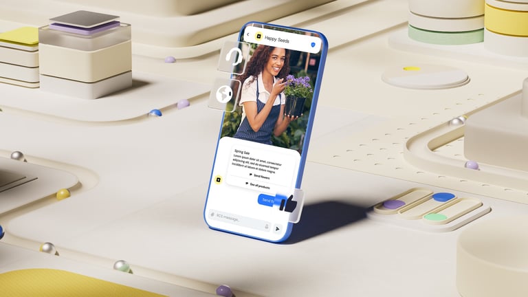 After all the exploratory concepts, the next step was to distill everything into a reusable 3D and UI template that Sinch's internal design team could easily update with their own icons and interface layouts.