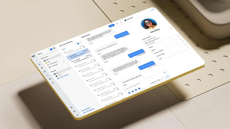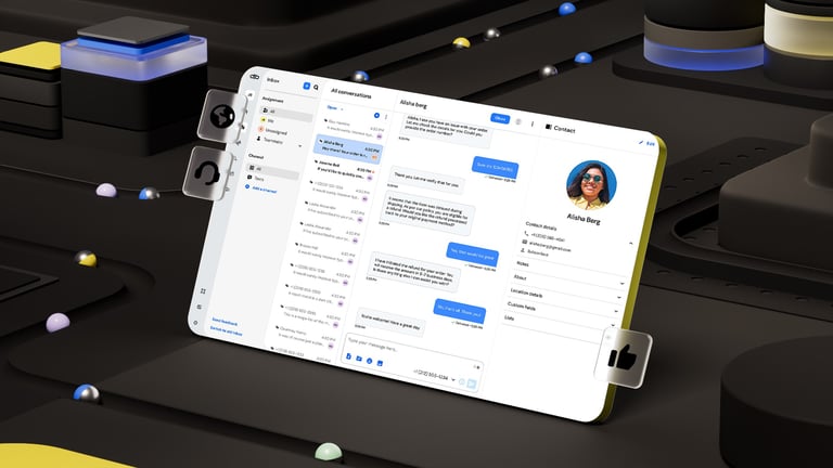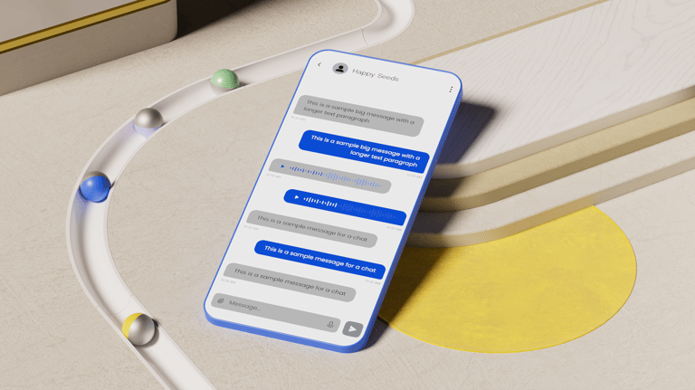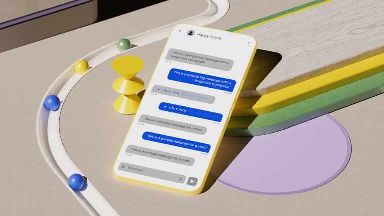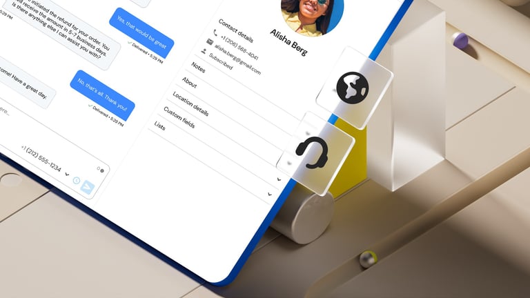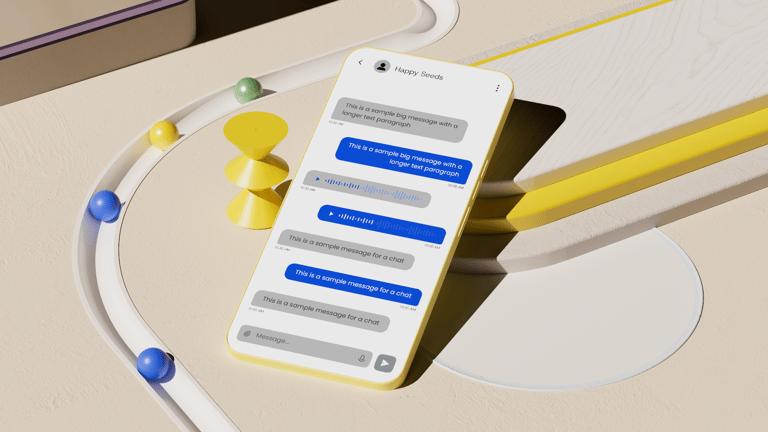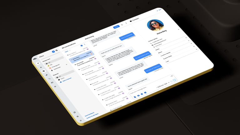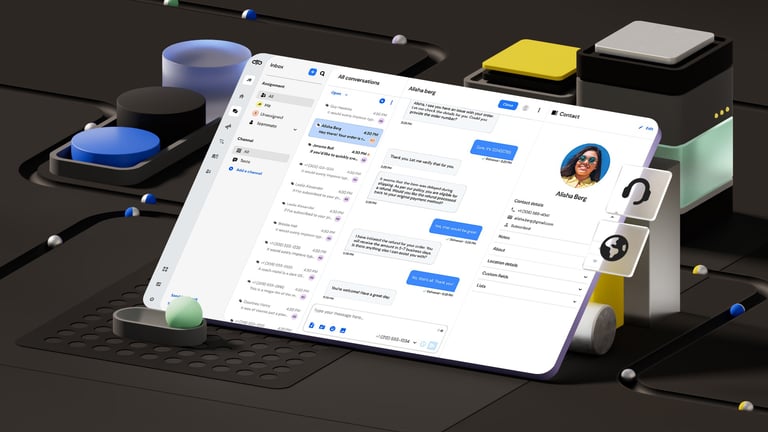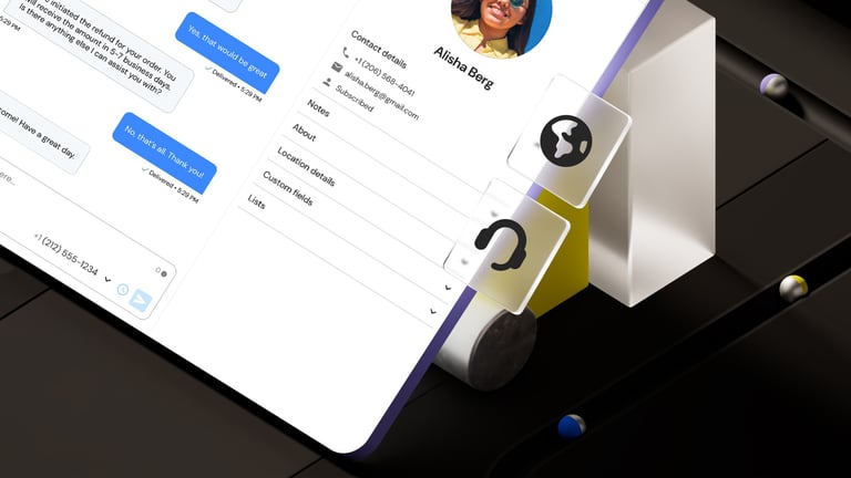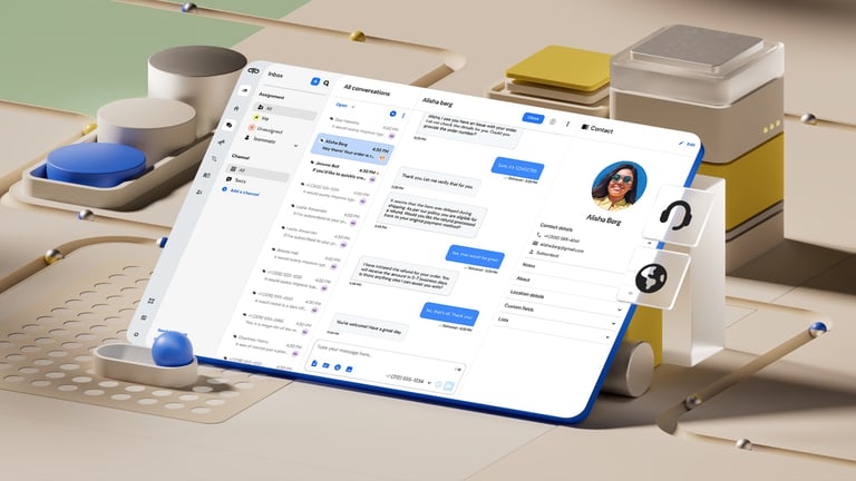 After all the exploratory concepts, the next step was to distill everything into a reusable 3D and UI template that Sinch's internal design team could easily update with their own icons and interface layouts.